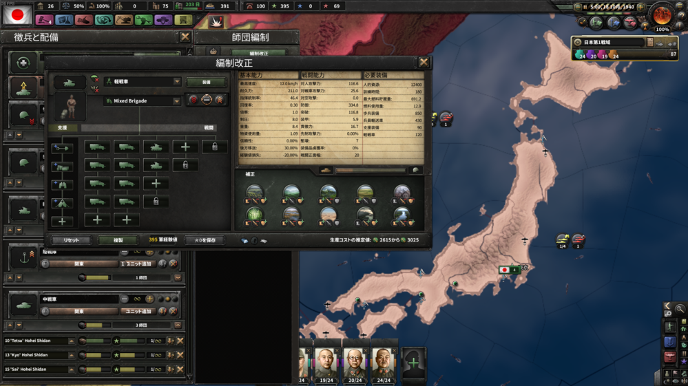 Hearts of Iron (HoI4) 日中戦争後の師団編成テンプレートとMPU MOD